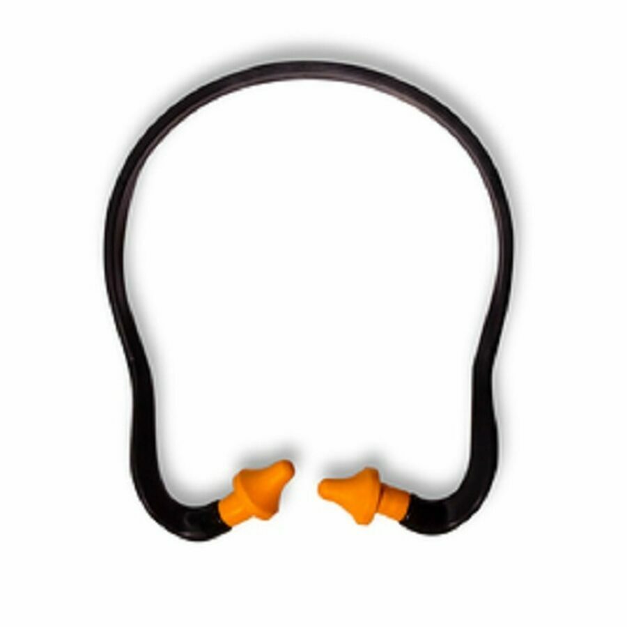 Description: RADNOR™ Orange and Black Multi-Position Banded Earplugs