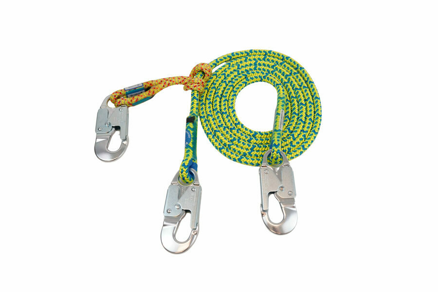 Description: 1/2" 16-Strand Adjustable Lanyard with 3 Aluminum Double Action Locking Snaps with 10mm Prusik