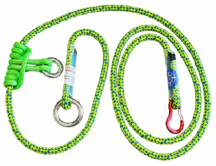 Description: ALL GEAR Aluminum Adjustable Ring to Ring helps reduce friction on your climbing line. 10 feet of Neolite II, with a large aluminum ring on one end and a tight sewn eye on the other coupled with a 3/8 inch x 30 inch Prusik with a small aluminum ring.