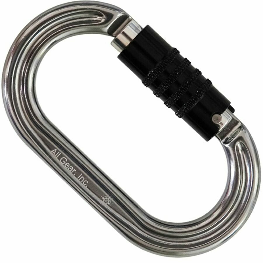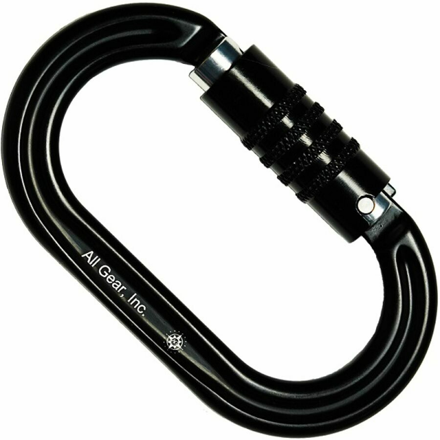Description: ALL GEAR Triple Action Aluminum Carabiner 24kN Opening 21mm Height 108mm Width 65mm Weight 75g.