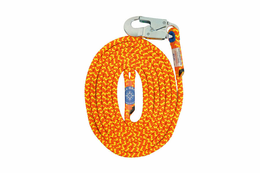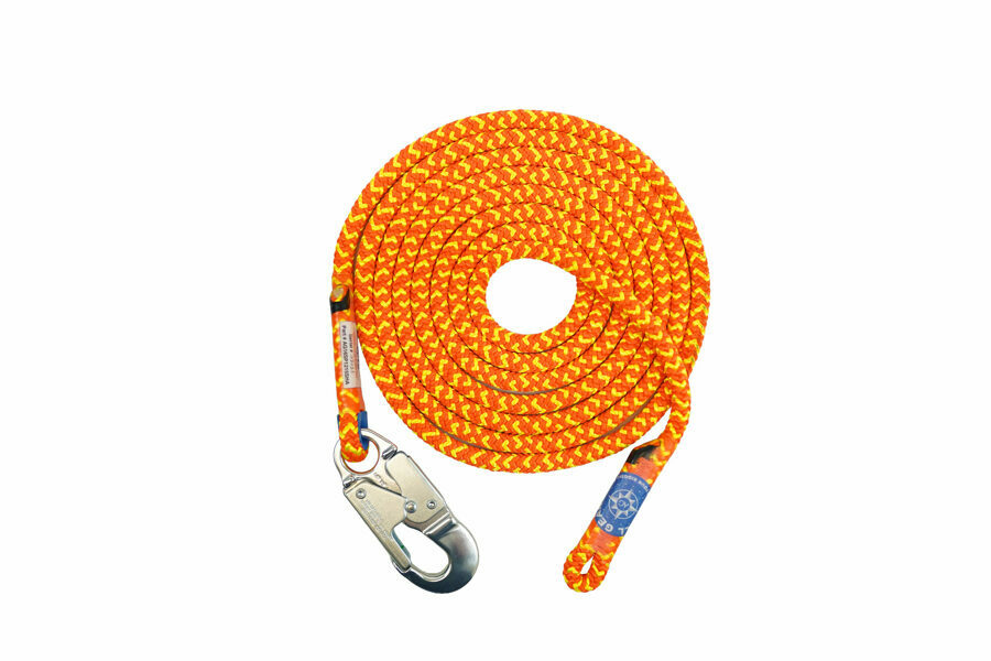 Lanyard, Snap to Eye, Sewn, Safetylite, 1/2" Dia, 15' Length, Dbl Action Alum Snap