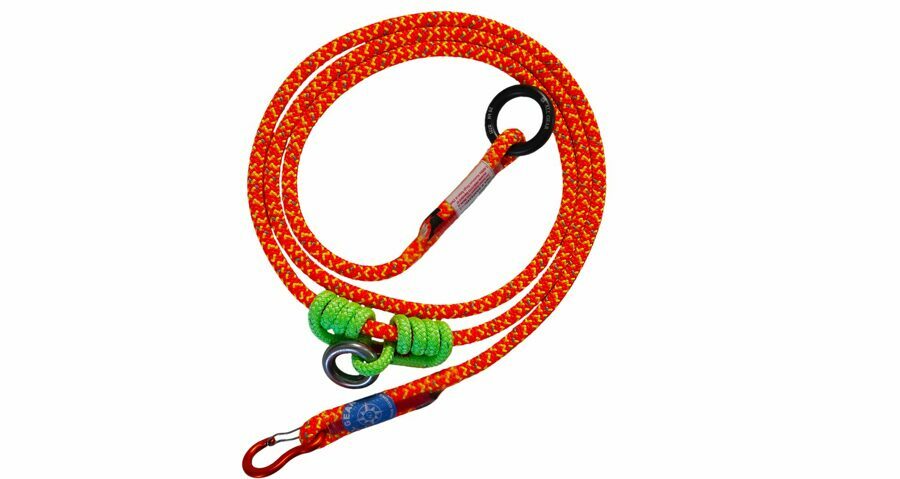 Description: Aluminum Adjustable Ring to Ring helps reduce friction on your climbing line. 10’ of 1/2” 24-Strand Line - Safetylite II™ or Neolite II™, with a large aluminum ring on one end and a tight sewn eye on the other coupled with a 3/8” x 30” Prusik with a small aluminum ring.