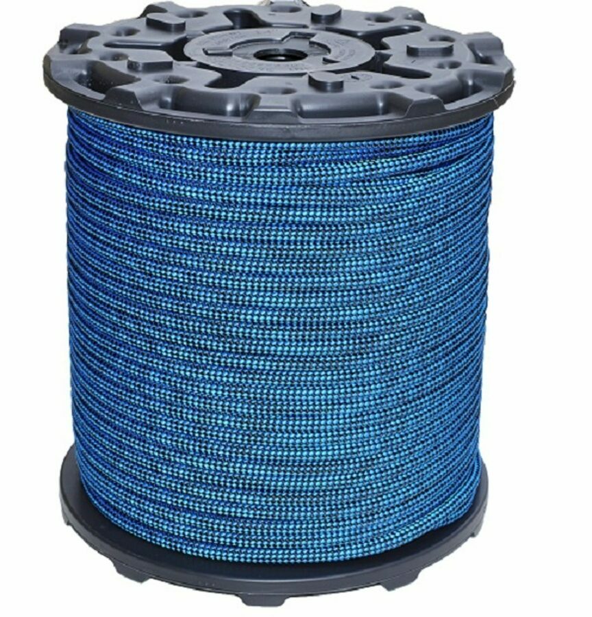 Description: ALL GEAR Black and Blue Finish Line 7/16 inch - 11mm 32-Strand Static Kernmantle 32-Strand Polyester Jacket over an 8-Strand Nylon Parallel Core. Low Stretch. 7,800 Lb. Avg. Tensile.