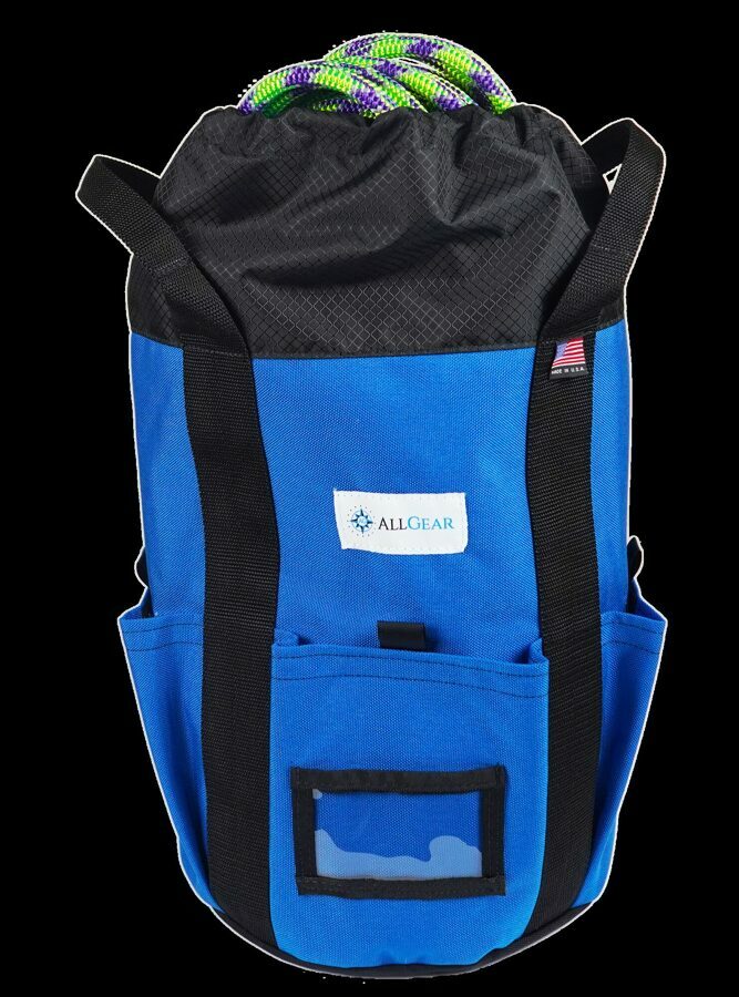 Description: All Gear Rope Storage Bag can hold up 200'of climbing rope. Features 4 side Velcro pockets for gear. Each bag comes with drawstring top closure and the top third of the bag is made of ripstop nylon and 2 webbing carry handles.