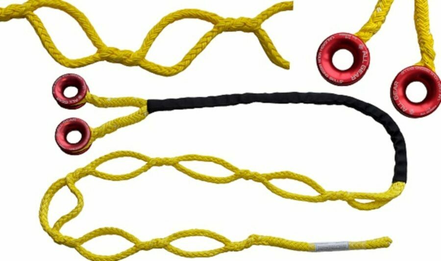 Description: ALL GEAR Husky-12 Double Ring Soft Rig Slings 12-Strand Polyester Double Ring Soft Rig Slings are used as a low stretch anchor point for Arborists and Utility contractors . All Gear's Polyester Double Ring Soft Rig Slings have a 2 foot Ballistic Nylon Outer Jacket which slides to cover any of the Ten Rig Point Eyes for Extended Life. Premium Husky Urethane Coating is applied to provide excellent resistance to chemicals, sunlight and abrasion.