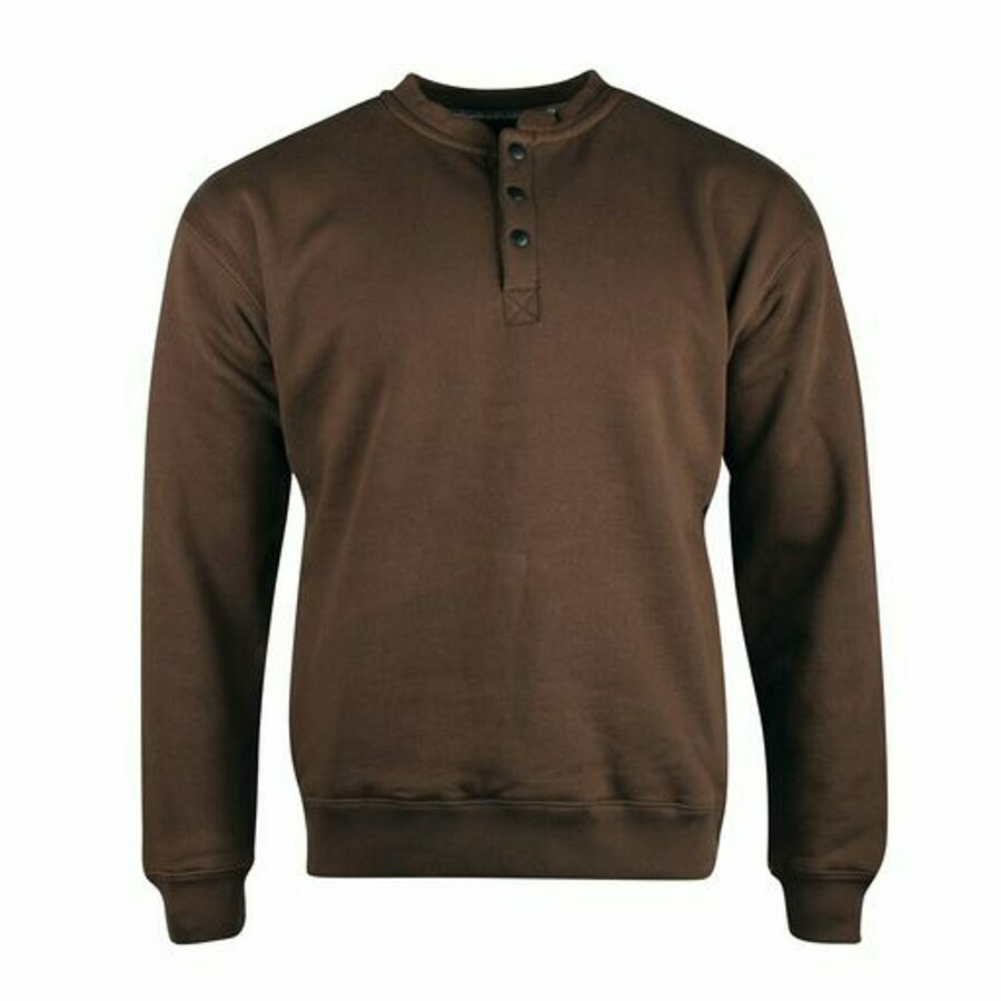 Description: Wearing our Double Thick Crew Sweatshirt is like getting a bear hug from a bear wearing two sweatshirts. This crew sweatshirt features two layers of thick, 13 oz. pre-washed 100% Cotton Fleece for comfort and warmth, and gusseted armpits because non-gusseted armpits are just sad. This hoodless cotton fleece sweatshirt also has two side seam pockets and a button snap Henley design. Arborwear Sweatshirts are cut for a streamlined fit. Designed so excess fabric won't get in your way, the fit allows for a maximum range of motion and is very comfortable. While other sweatshirts shrink down after a dozen trips to the laundry, our Sweatshirts will exhibit very little, if any residual shrinkage after washing. Arborwear Double Thick Sweatshirts may feel tight as you pull them on as the Double Thick layers of Cotton Fleece don't stretch quite as much as our Single Thick style. Once on, our Double Thick Sweatshirt will loosen up. If you prefer the fit of a big, baggy sweatshirt, we recommend you order up one siz