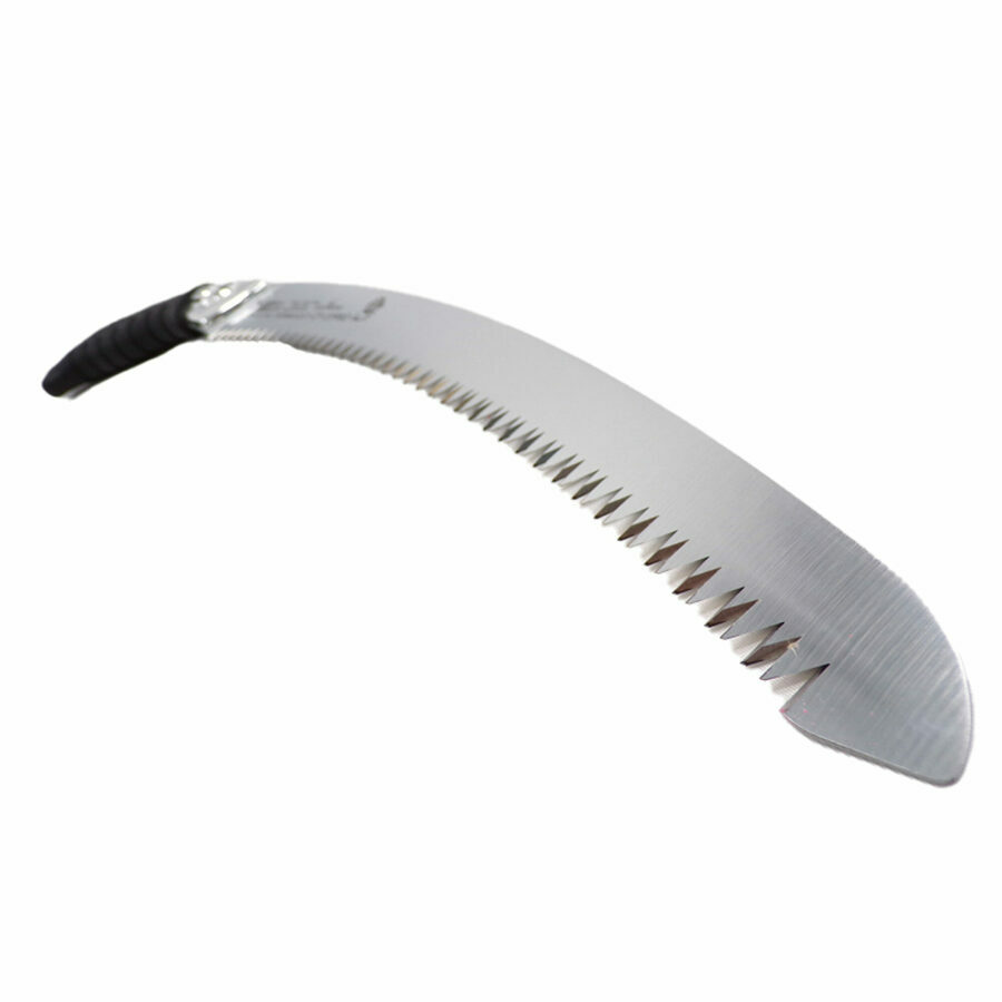 Description: Now available with longer blades and new handle design! The top-of-the-line PRO series features top quality precision ground blade which is hard chrome plated to resist sap buildup. The teeth are impulse hardened for maximum strength and durability, and the blade is tapered for resistance-free sawing. The blade angle is optimal for sawing and pruning. The result is a finished cut so perfectly smooth it appears to be planed. Includes a reversible leg scabbard with belt loop for easy access from left or right leg. Scabbard features thumb trigger release and patented roller technology that allows quick and easy release and stow and prevents damage to the scabbard.