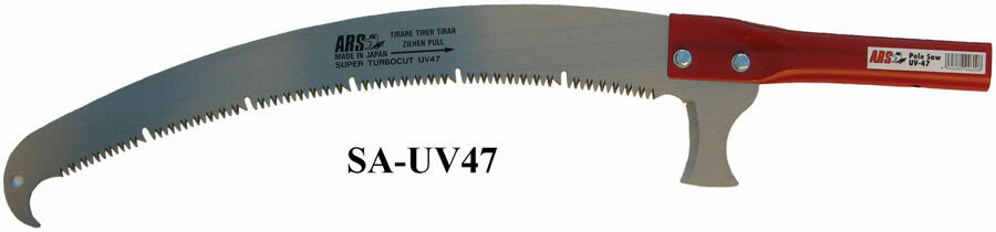 Description: These 17" saws feature the ARS Super Turbocut blades. The blades are Marquench hardened to hold their razor sharp edge and extra long time! The high carbon tool steel blade is chemical nickeled for rust and sap resistance, and include a bark cutter. The included adapter snaps on the SC-EXP Extension Poles. Comes with sheath to protect the blade (and you!) when not in use.