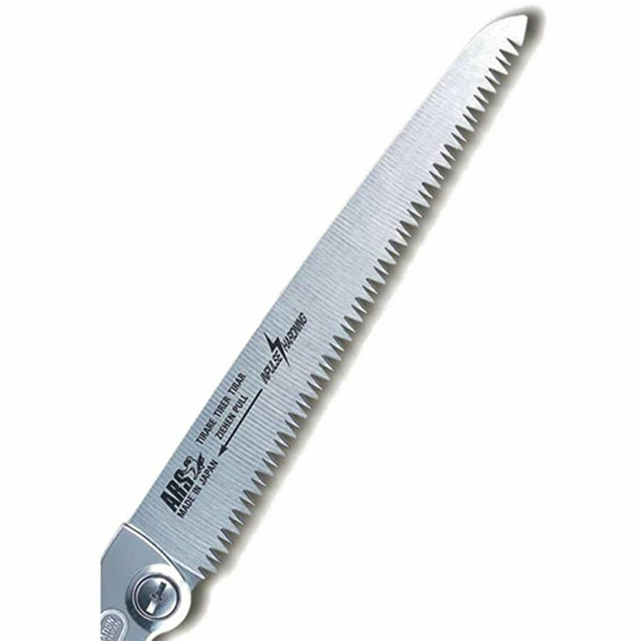 Description: ARS 9" Blade - Replacement Blade for SA-PM24L. Long slender high carbon tool steel blades are impulse hardened to hold their razor sharp edge an extra long time! Curvature ground blade is hard chrome plated for rust and sap resistance. Longer tooth pitch is perfect for pruning.