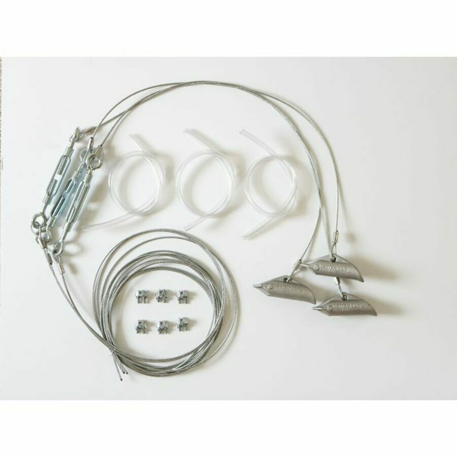 Details: Package Contents 1 Tree Kit: 3 anchors with attached galvanized steel cable, 3 tree collars, 6 cable clamps, 3 turnbuckles