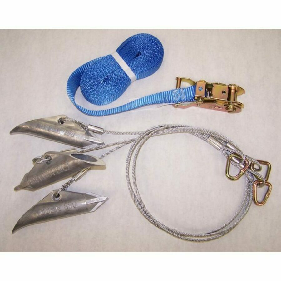 Contains: #880 anchors (3) with 42" x 3/16" cable & D-rings, 1 strap with hand ratchet