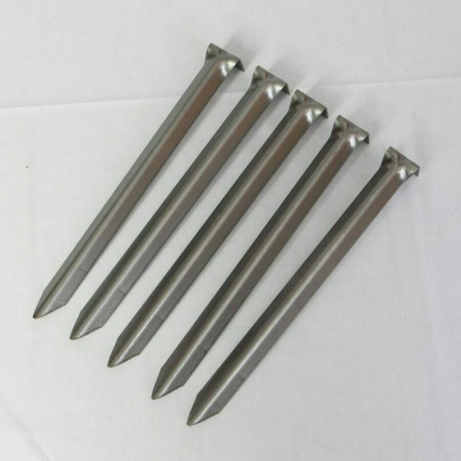 Description: Tough As Nails are stakes / landscape spikes that can be used with edgings / paver edging / wire brick edging. The chiseled tip makes for easy installation and the strong "V" design allows for maximum holding. Landscape Spikes - Bulk 9 inch.