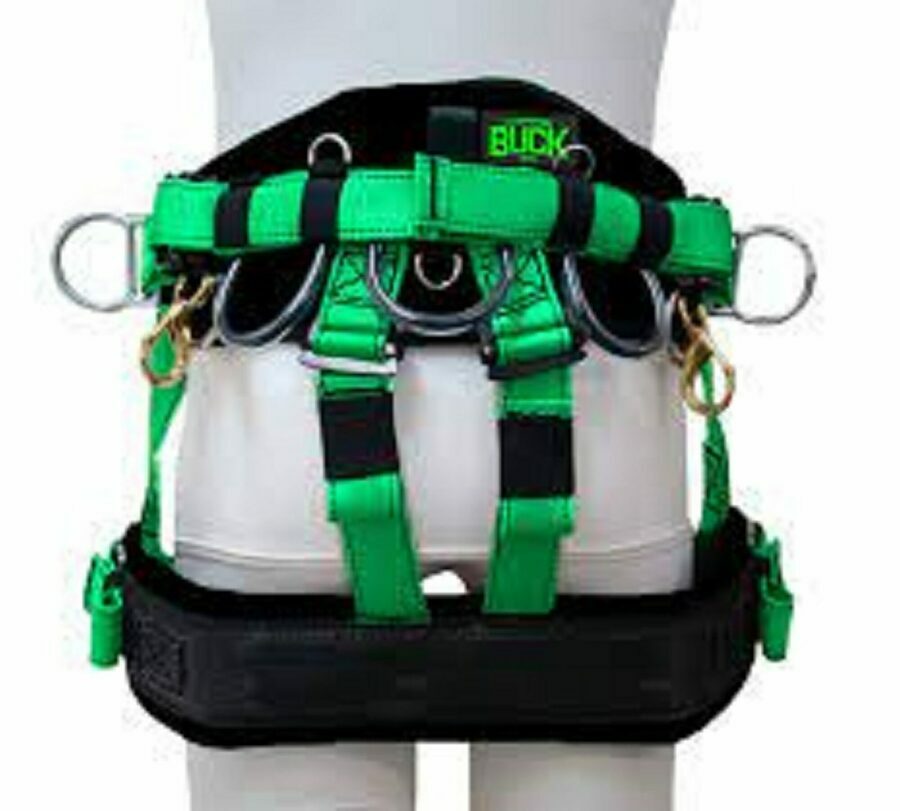 Tongue buckle waist strap to prevent slippage when hanging a heavy chainsaw.