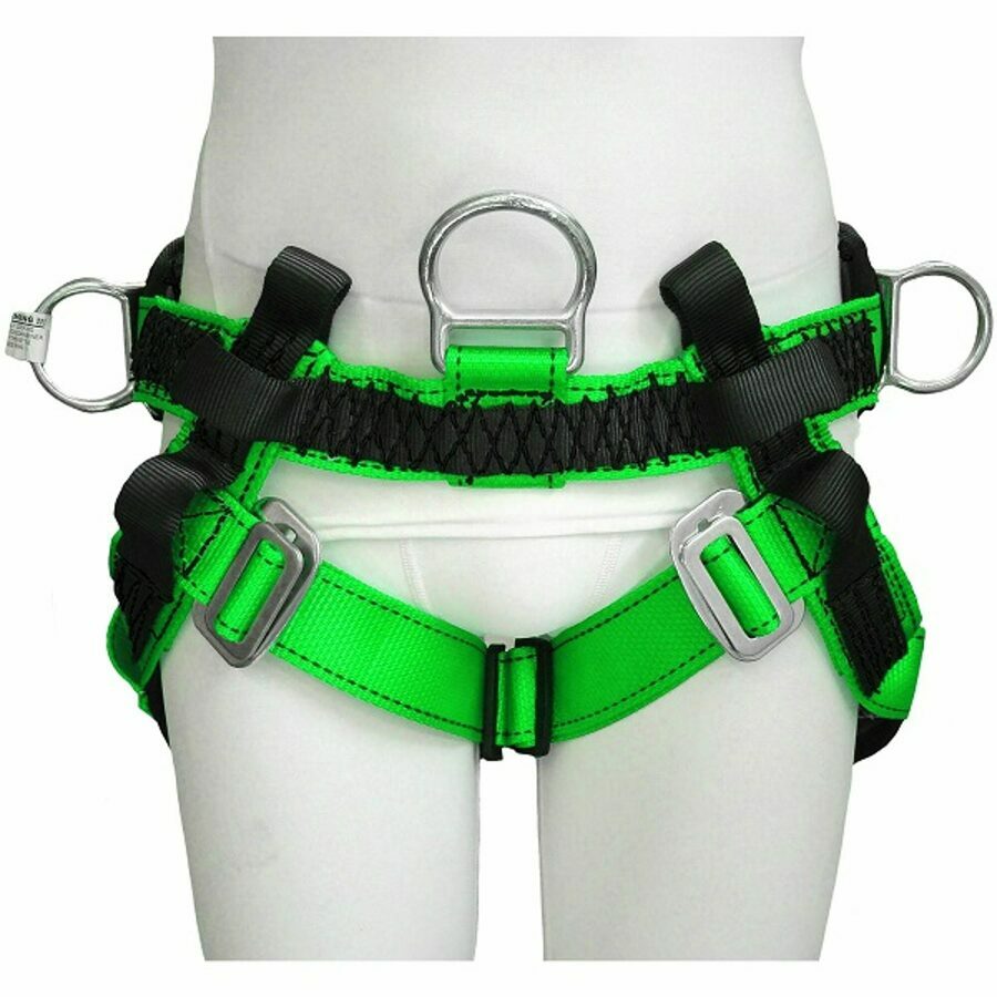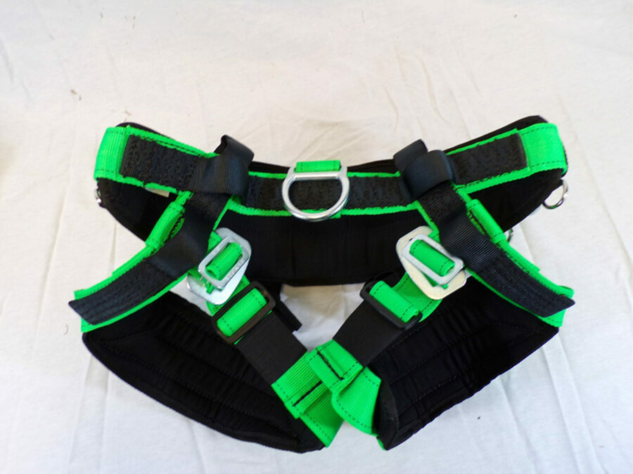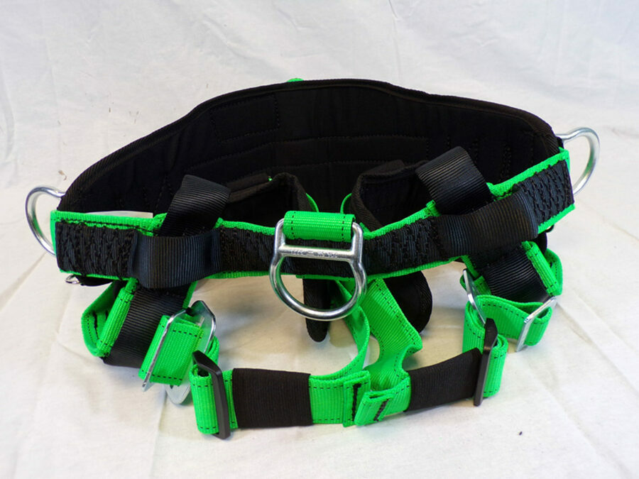 Description: A Classic Master ArborMaster saddle that features a step-in waist belt with individual interlocking buckle leg straps.