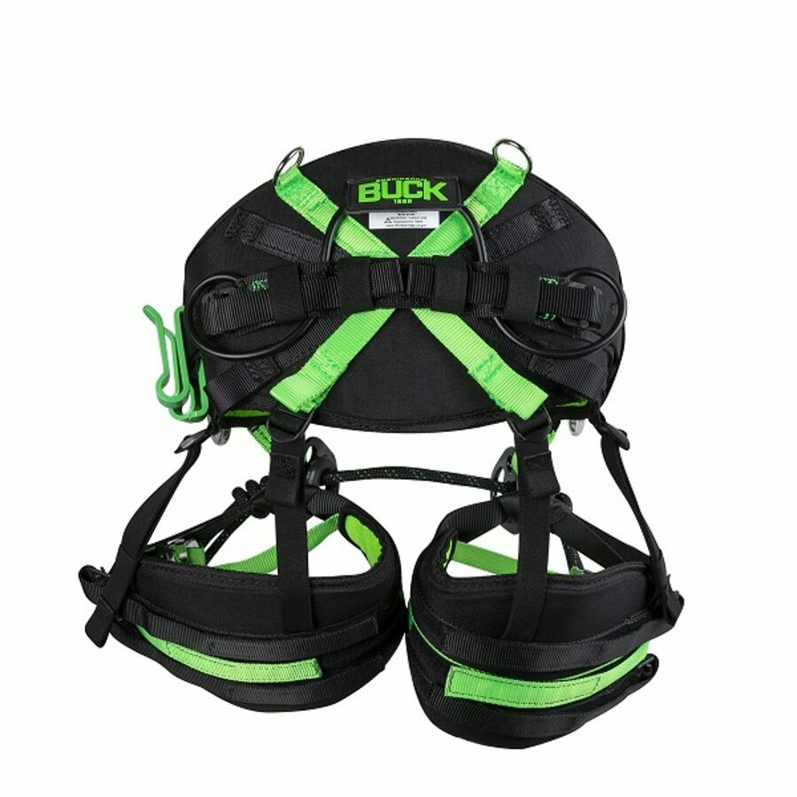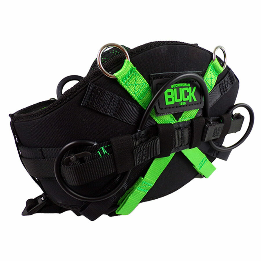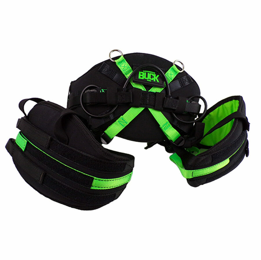 Description: The Buckingham Agility saddle was designed in conjunction with Jamie Chambrelli, and the team at ArborMaster Training Inc. Jamie is a lead instructor with ArborMaster Connecticut Licensed Arborist and production tree climber. During development, we looked at feedback around the industry including proper fit, adjustment slippage, mobility of suspension systems, proper support at legs and back, lower hardware options and other attachment options throughout the suspension, and a plethora of other issues with saddles around the industry. The handmade in the USA Agility saddle was designed and built for “Work” with a focus on comfort, durability, mobility, and functionality