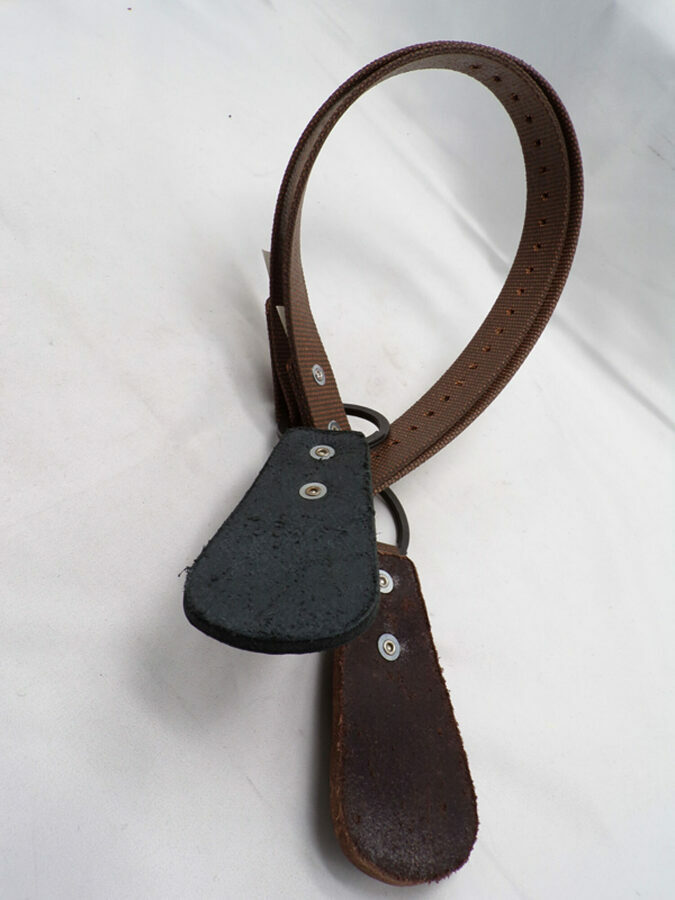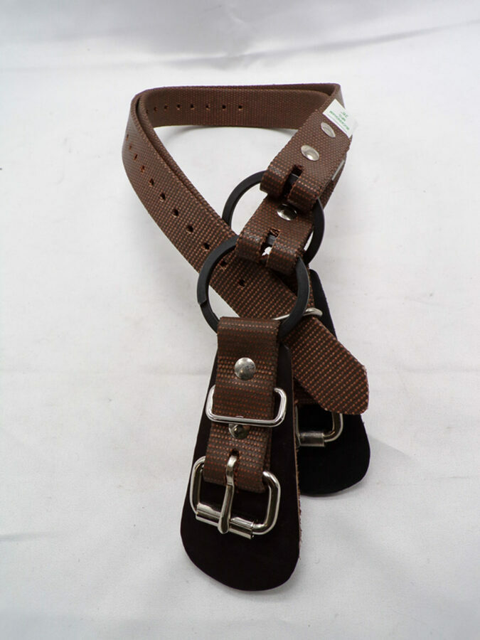 Description: A two-piece foot strap construction featuring a split ring that is permanently attached to the stirrup ring on your climber.