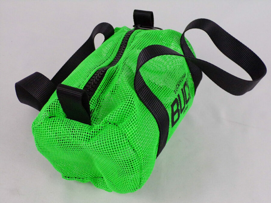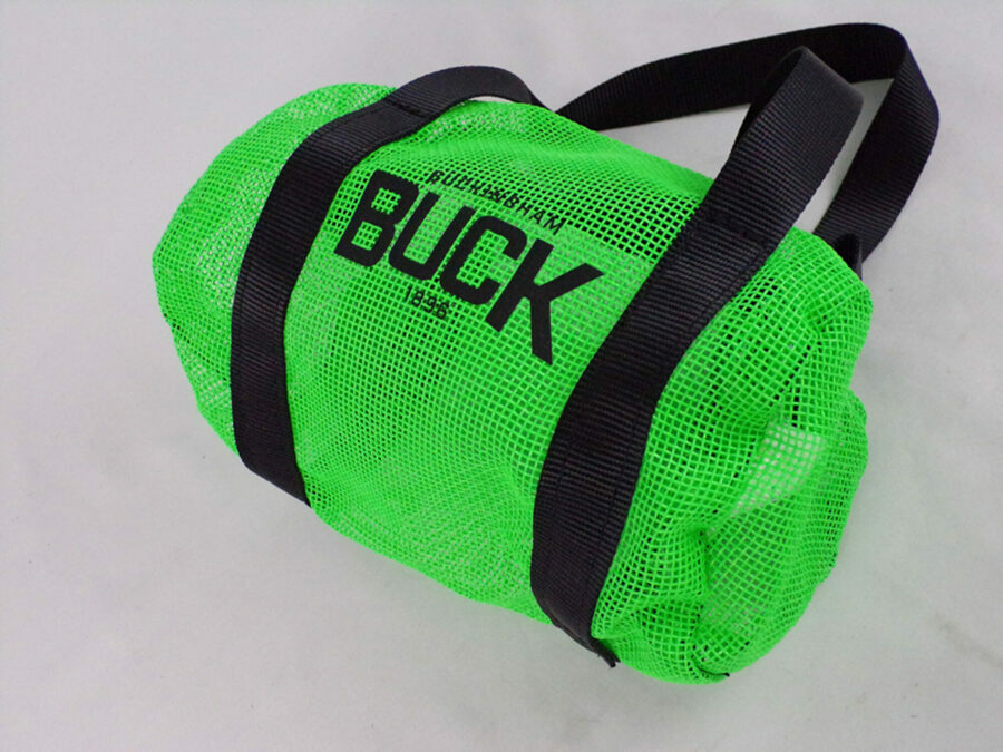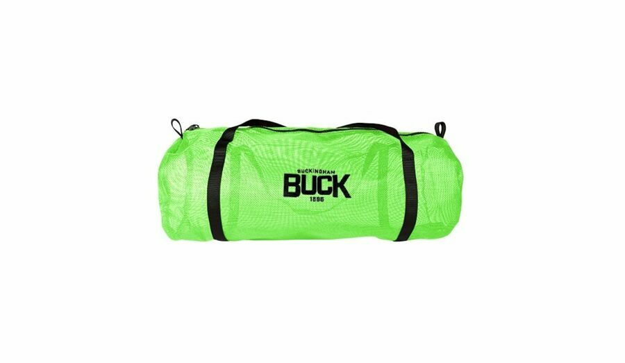 Description: BUCK Green Mesh Tool Duffle Bag - Hold your carabiner, slings, hitch cord, or excess hardware in neat orderly fashion. Easy to find and locate due to the mesh.