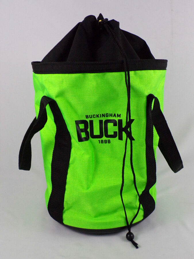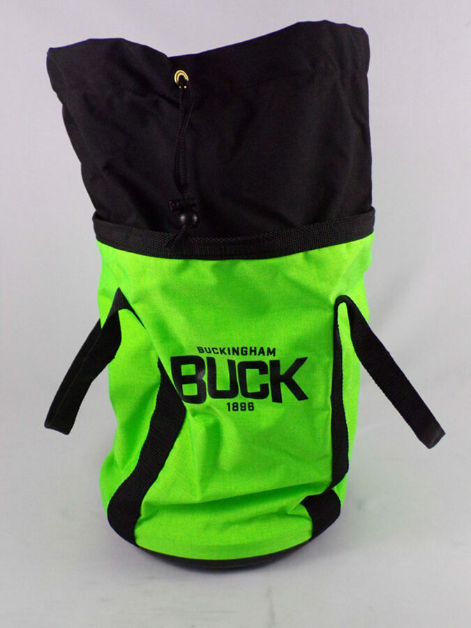 Description: This lightweight Buckingham Rope Bag is made for hauling rope and keeping your rope out of weather conditions when not in use. This rope bag features a drawstring closure top and two large carry handles. This rope bag features a rubber bottom.