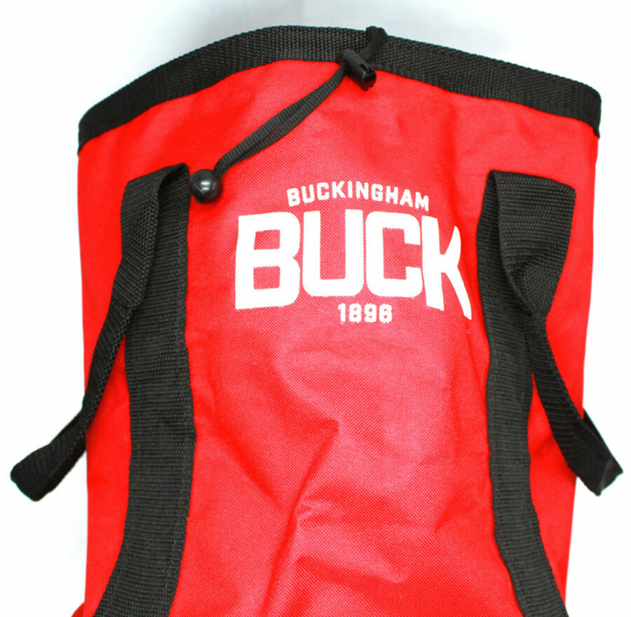 Description: This lightweight Buckingham Rope Bag is made for hauling rope and keeping your rope out of weather conditions when not in use. This rope bag features a drawstring closure top and two large carry handles. This rope bag features a rubber bottom. For other options you can view (4569) All lengths “sized to 5/8? rope” Durable rubber bottom rubber gliders to help maintain form and keep bag off the ground preventing moisture from seeping in through the bottom. Heavy duty nylon carry handles with reinforced nylon stitching. Product Number: 45691G4/45691B4 Product Name: Buck Rope Bag Height: 15? Width: 12? Weight: 1.59 lbs. Rope Size 5/8? Number of Pockets: 0 Outside Pockets: 0 Inside Pockets: 0 Pocket Material: N/A Material: Canvas 2 Way Snap: No Rain Flap: No Back Straps / Shoulder Straps: No Closure Tab: Drawstring Bottom Material: Plastic Made in USA?: Yes