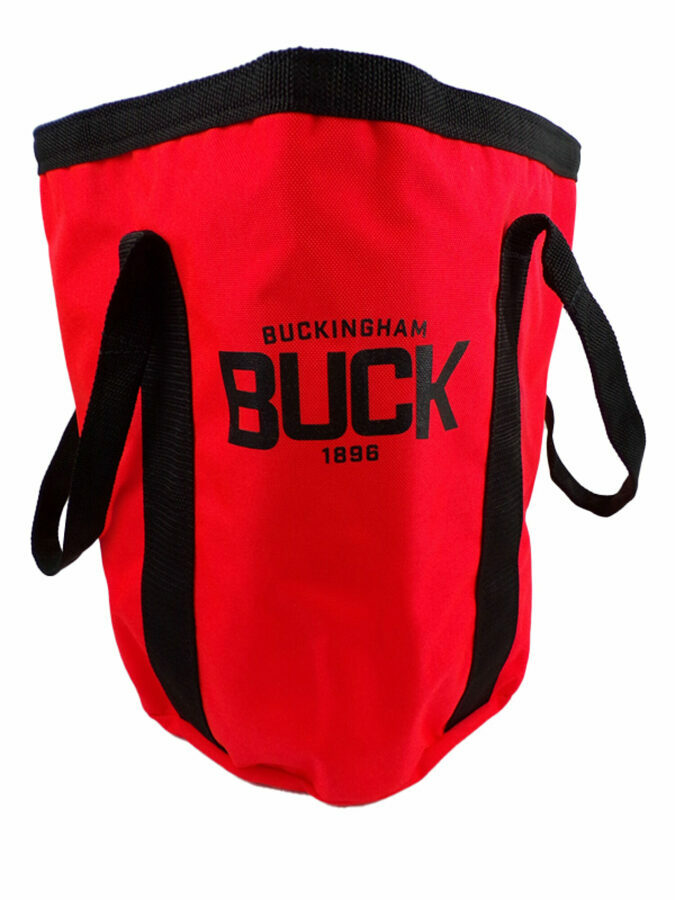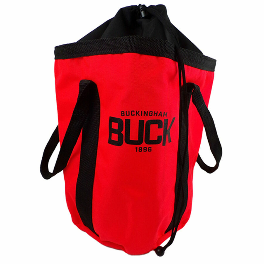 Description: BUCK Basic Rope Bag - Orange. Constructed of heavy water resistant red cordura fabric. Top drawstring to help keep the elements out and your rope in.