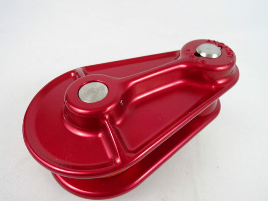 Description: Designed to eliminate virtually all friction when removing heavy limbs. Stainless steel sheave with bushing pins. This rigging block is tensile tested to 22,500 lbs, and has a safe working load of 4,496 lbs. The sheave allows up to a 5/8″ line and weighs approximately 3 lbs.