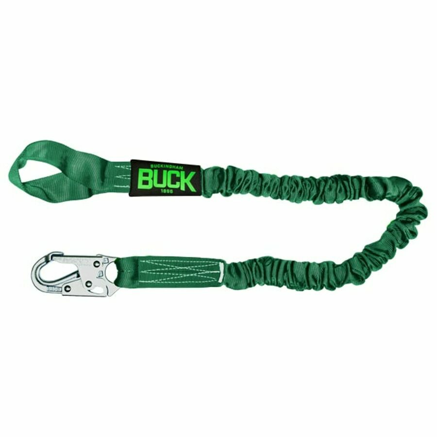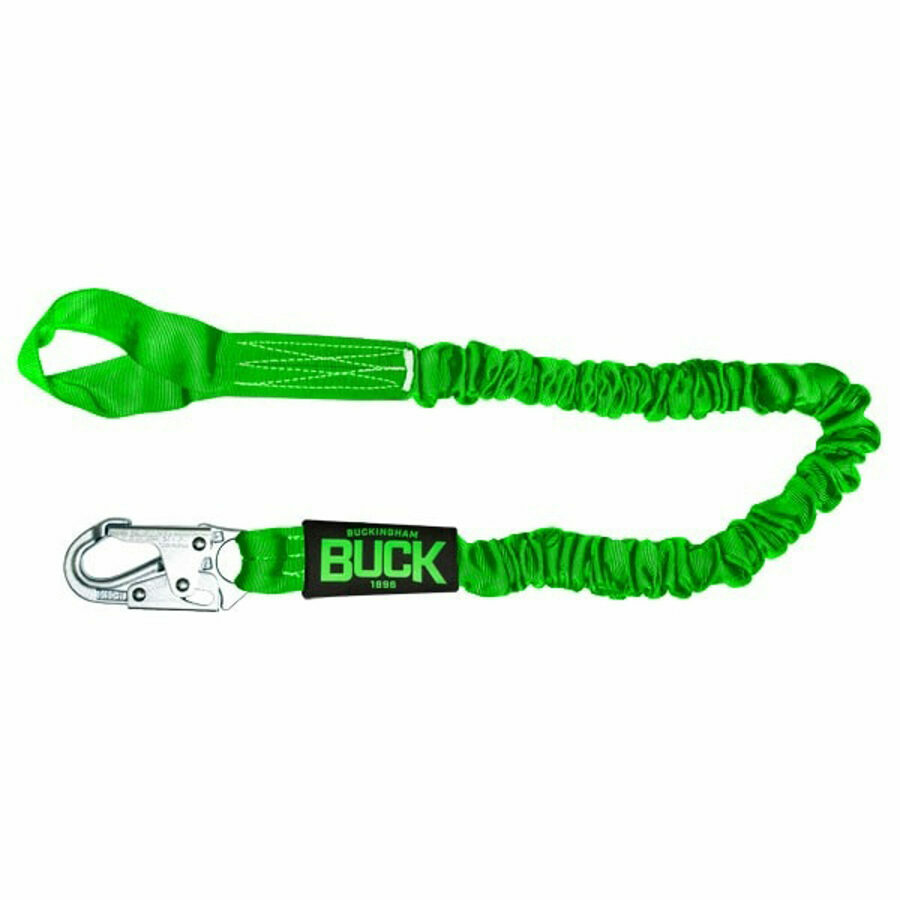 Description: The BuckYard Stretch expands-stretches when working. A 6 Foot lanyard will expand-stretch to 6 feet when worked and will retract to 44 inches, minimizing the length of webbing the end user has while working reducing tripping hazards.