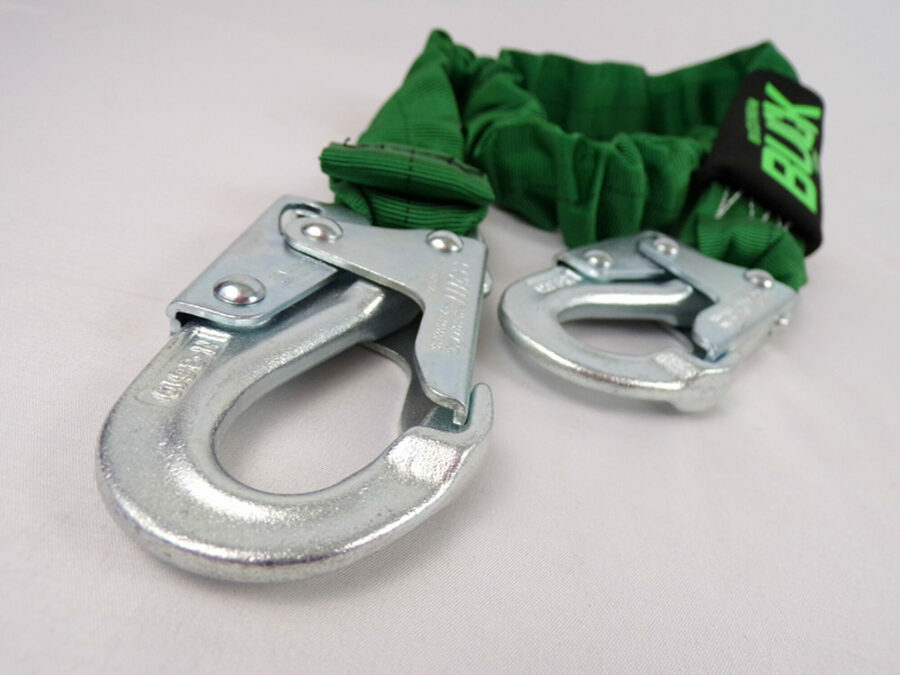 Description: BUCK BUCKYARD ASTM SNAP-SNAP LANYARD For full body harness with steel ring dorsal attachment. Interior materials stretch to reduce the arresting force to less than 900 lbs. Two 1706 locking snap hook’s on both ends.
