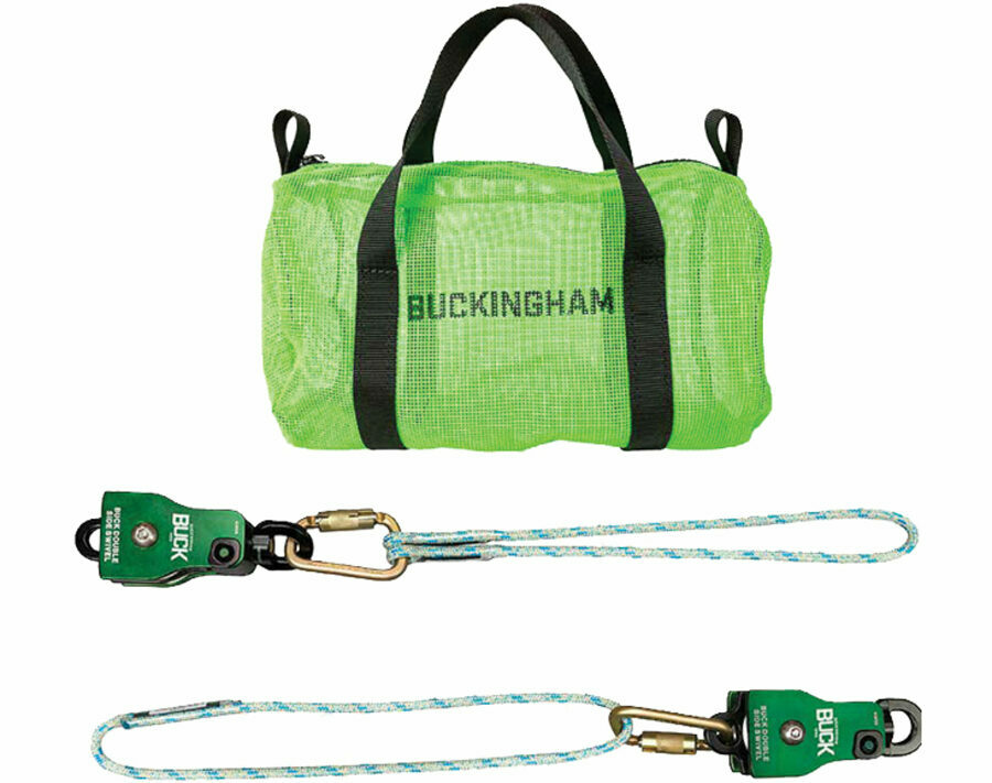 Description: Buckingham’s Tree Felling Kit allows you to easily gain a mechanical advantage to pull trees and much more with the use of Buckingham’s side swivel pulleys and prusiks.