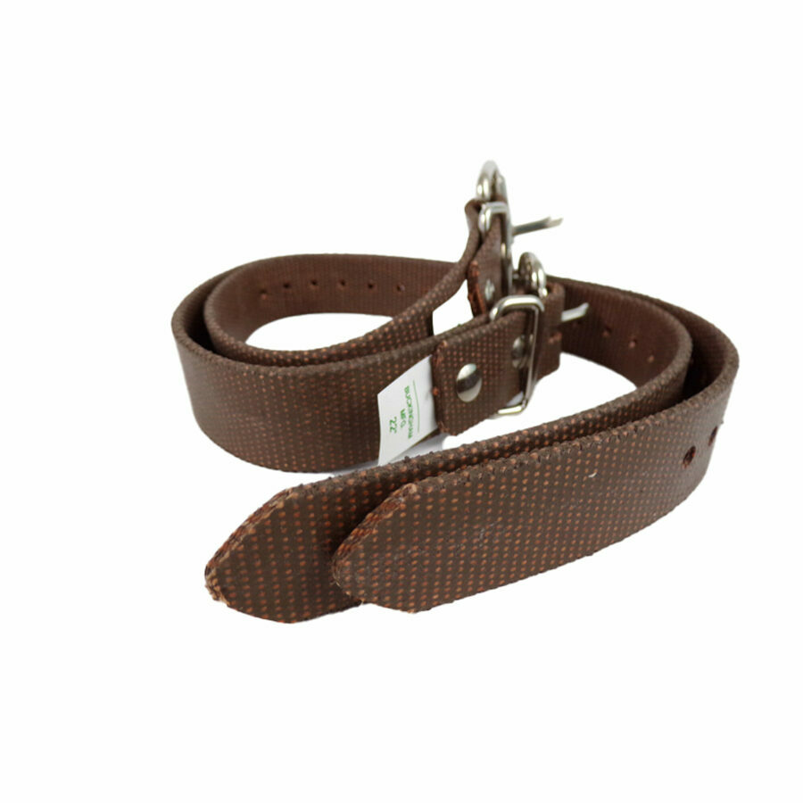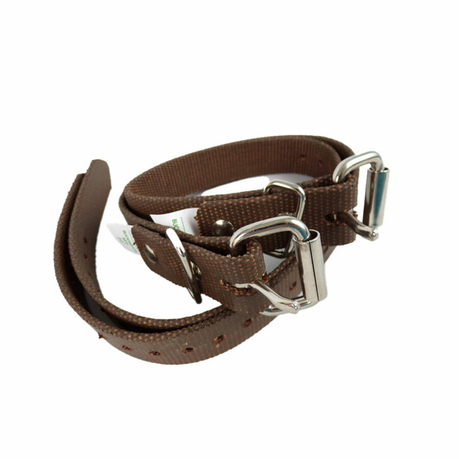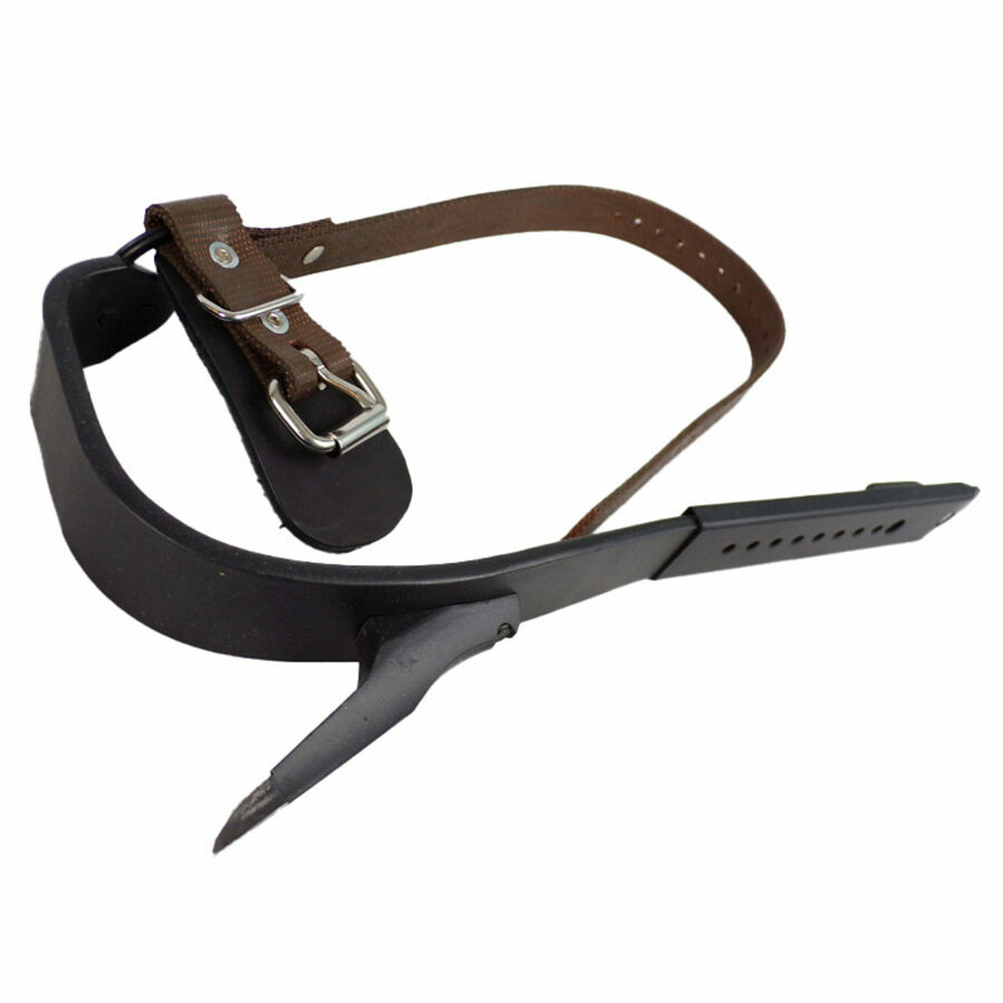 Description: Buckingham Steel Tree Spurs - Complete Kit BUCK's steel tree climber (spurs) have a contoured shank, straight stirrup and a dowel and screw replaceable gaff. Tree Climber with Straight Stirrup, Pads, Upper and Lower straps