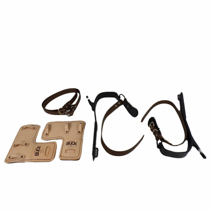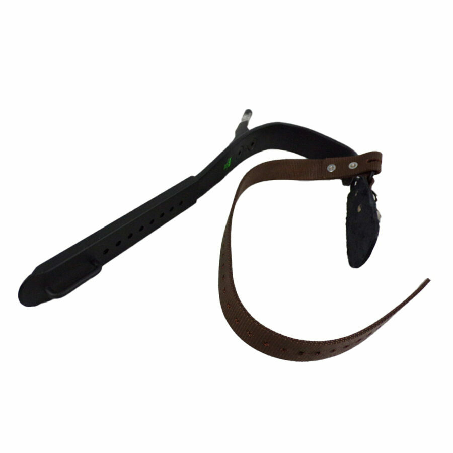 Description: Steel tree climber with a contoured shank and offset stirrup. Includes pads, upper and lower straps, and standard length sleeves model 9204 adjusting from 16-1/4 inch to 18-3/4 inch. A dowel & screw design allows for easy gaff change out if needed.