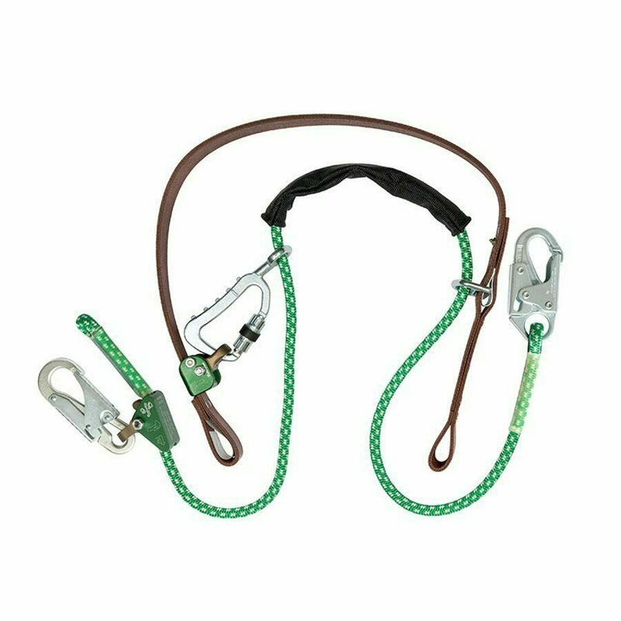 Details: Features the same easy one-handed adjustment on the inner strap with the BuckGrab™. Can easily be configured to use a rope or web strap based on the user’s preference. Only one disconnect point when climbing over an obstruction. Can be used by right or left-handed users. All straps have red warning centers.