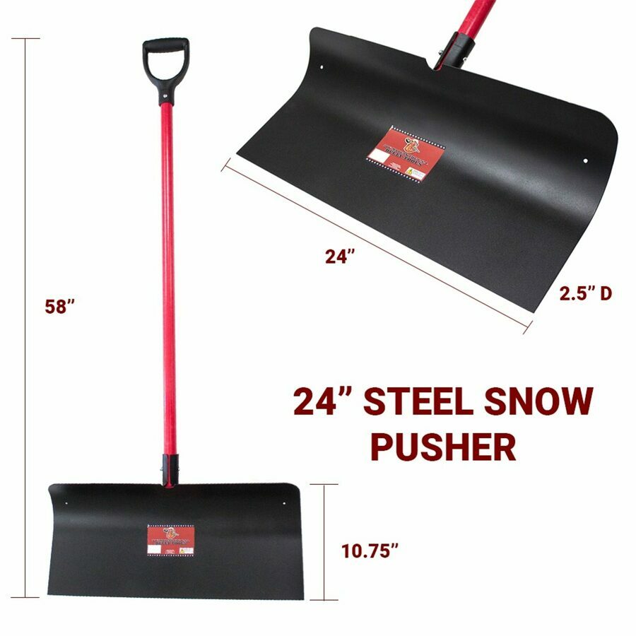 Details: STEEL SNOW PUSHER – Easily push heavy piles of snow and ice from walkways and driveways