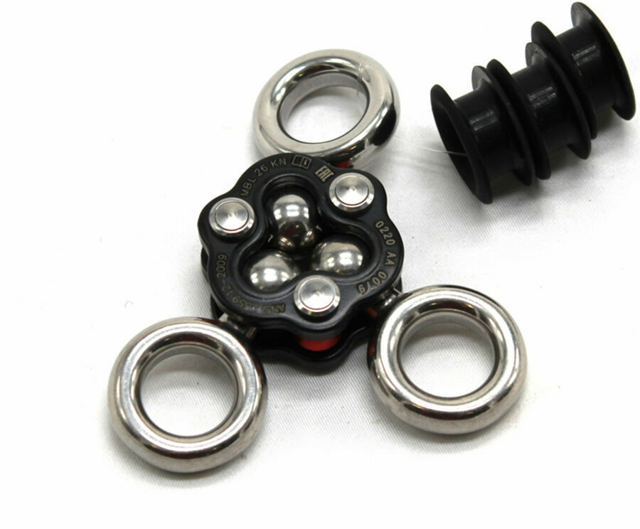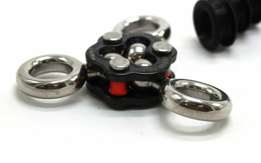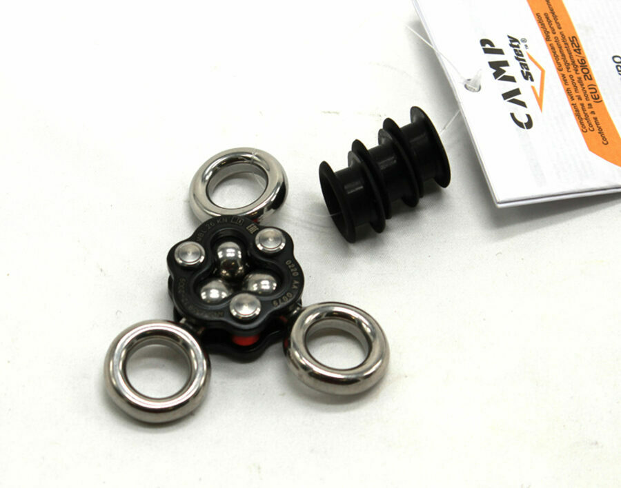 Description: A compact and extremely versatile rigging system featuring Camp’s proprietary triple swivel design. Rotates at all three connection points. Allows for countless possibilities of connection between different elements that need freedom of movement. Applications: self-orienting multi-anchoring, multiple connections to a harness, preventing twisting in Y lanyards, cross hauling operations, Tyrolean traverses, complex rescue procedures. Prevents the accumulation of dirt and makes inspection easy. Main structure is carbon steel with a double corrosion preventive coating. Stainless steel swivel balls and attachment points.