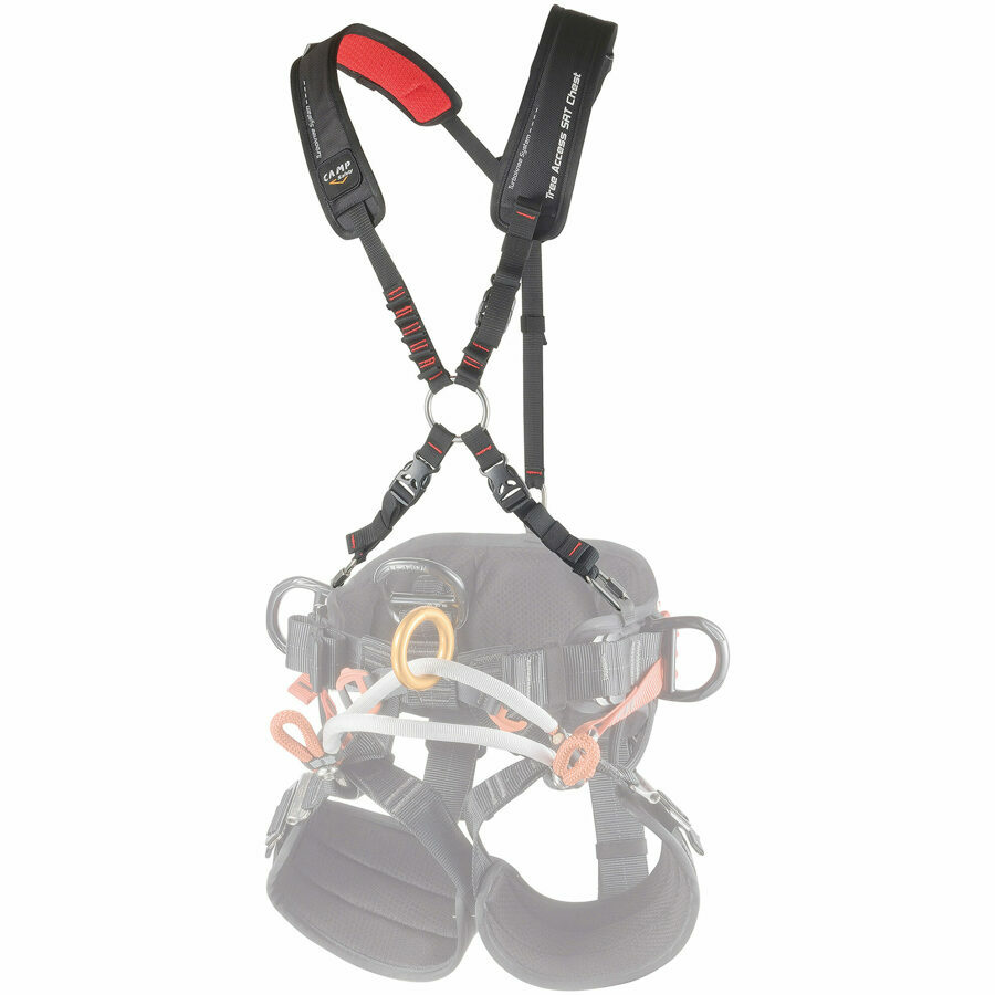 Description: A top-level accessory chest harness designed to deliver maximum efficiency and performance for SRT maneuvers. Designed to integrate seamlessly with Tree Access ANSI ST and 2021 version of the Tree Access Evo harness. It can also be rigged to other harnesses. Dedicated attachment points for the Turboknee System. Numerous loops for secondary connections. Provides additional support and load dispersal when used in combination with a sit harness. Padded shoulders for all day comfort. Padding is color differentiated for left and right. WARNING: The Tree Access SRT Chest is a climbing aid/accessory harness, it must never be used to for life support or safety functions.