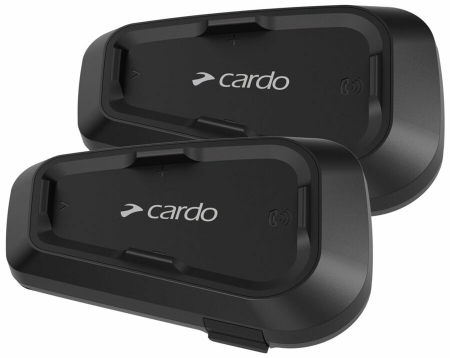 Description: CARDO SPIRIT HD • Crystal-clear Bluetooth intercom covers 2 riders at a range of up to 0.4mi • Powerful 40mm HD speakers, advanced processor, and 3 uniquely designed sound profiles • Over-The-Air Software Updates whenever a new version is available • Built-in FM Radio with RDS for automatic selection of the strongest signal regardless of location • Universal Connectivity: Connects with any other Bluetooth® headset of any brand. • Automatic Volume: Automatically adjusts audio volume based on outside ambient noise • Music streaming directly from smartphone • Make calls and control your GPS with a touch of a finger or the sound of your voice. • Fast charging: Two hours of talk time after a 20-minute charge • Robust and universal USB type C for easy connections to any device