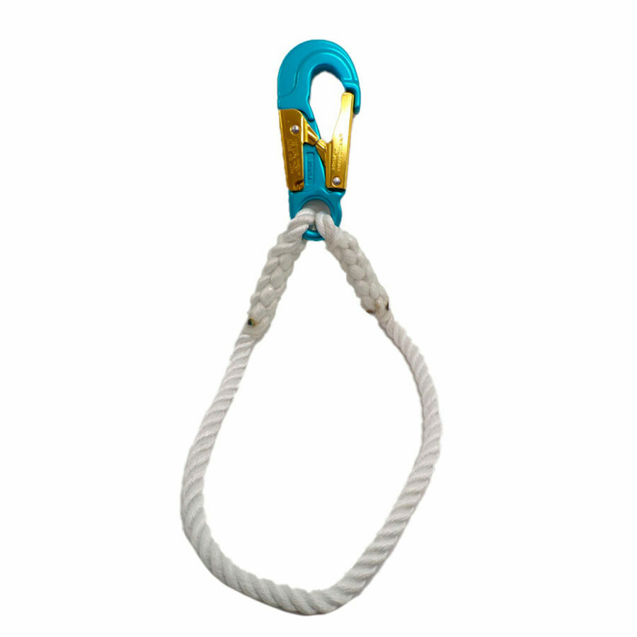 Description: 1/2" X 20" 3 STRAND PRUSIK WITH ALUM BLUE SNAP