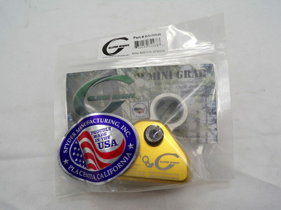 Description: A favorite rope grabs for a lot of climbers for many reasons. First, it's made in the U.S.A. Second, it's compact and lightweight and works with both 1/2 inch and 5/8 inch flip lines. Lastly, it has an internal spring design that is both stronger and more reliable than traditional springs.