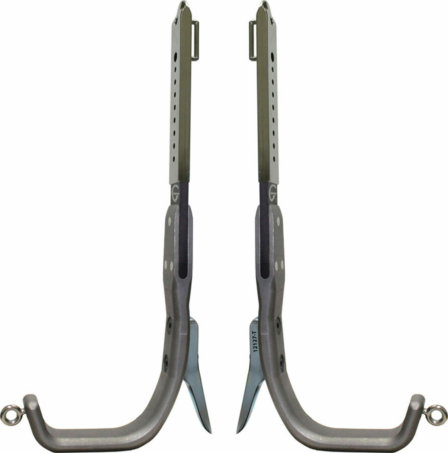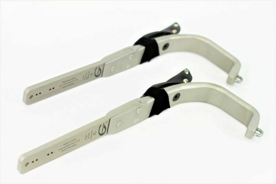 Description: Spyder Aluminum Tree Spurs (without straps or pads). Climb Right aluminum spurs are lighter than steel climbers while maintaining high strength. Made by Spyder Manufacturing with a straight shank from tempered aluminum. The bottoms of the climbers are textured for better grip when walking on tree limbs. The gaffs are made in Spyder’s new “Quick Change” style, with a two-screw design that lets you switch or replace gaffs quickly. The top screw is fully threaded through the gaff, giving the operator a visual guarantee the gaff is completely tightened to the climbing stirrup. Climb Right aluminum spurs are made in the USA. Add your own straps and start climbing in these unique spurs. Will work with “L” Pads, ‘T’ Pads, Super Climber Pads, Soft Cushion Wraps, or the new Ultra Light Pads, and universal straps.
