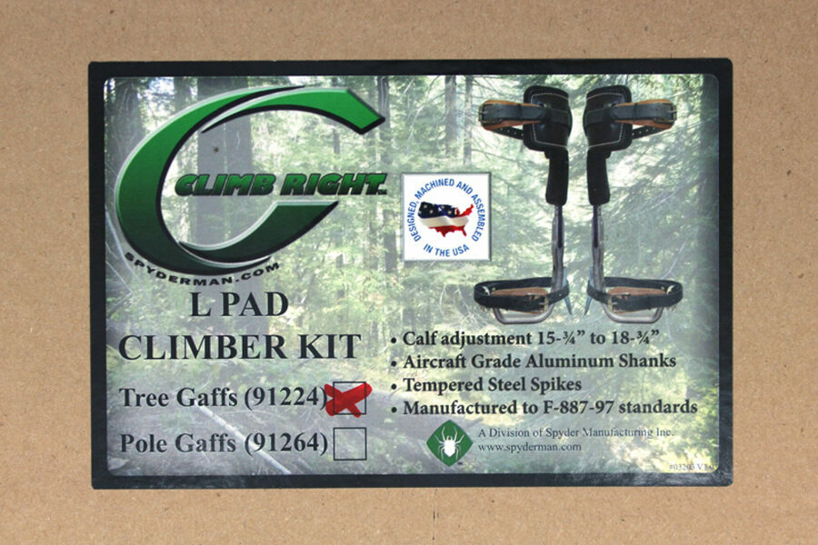Description: Aluminum Climber Kits with straps and L pads. Patented design give these climbers strength, durability and style Utilizes an aluminum lower J portion that is precision milled to exact tolerances Quick Change style gaffs employ a rapid change 2-screw design, enabling the operator to switch or replace gaffs with ease Patent pending Grip Strip provides added traction while walking on limbs and doubles as a wear strip to inform you when its time to replace your J Hooks. Complete set ships with composite L-Pads and straps (both lower and upper)