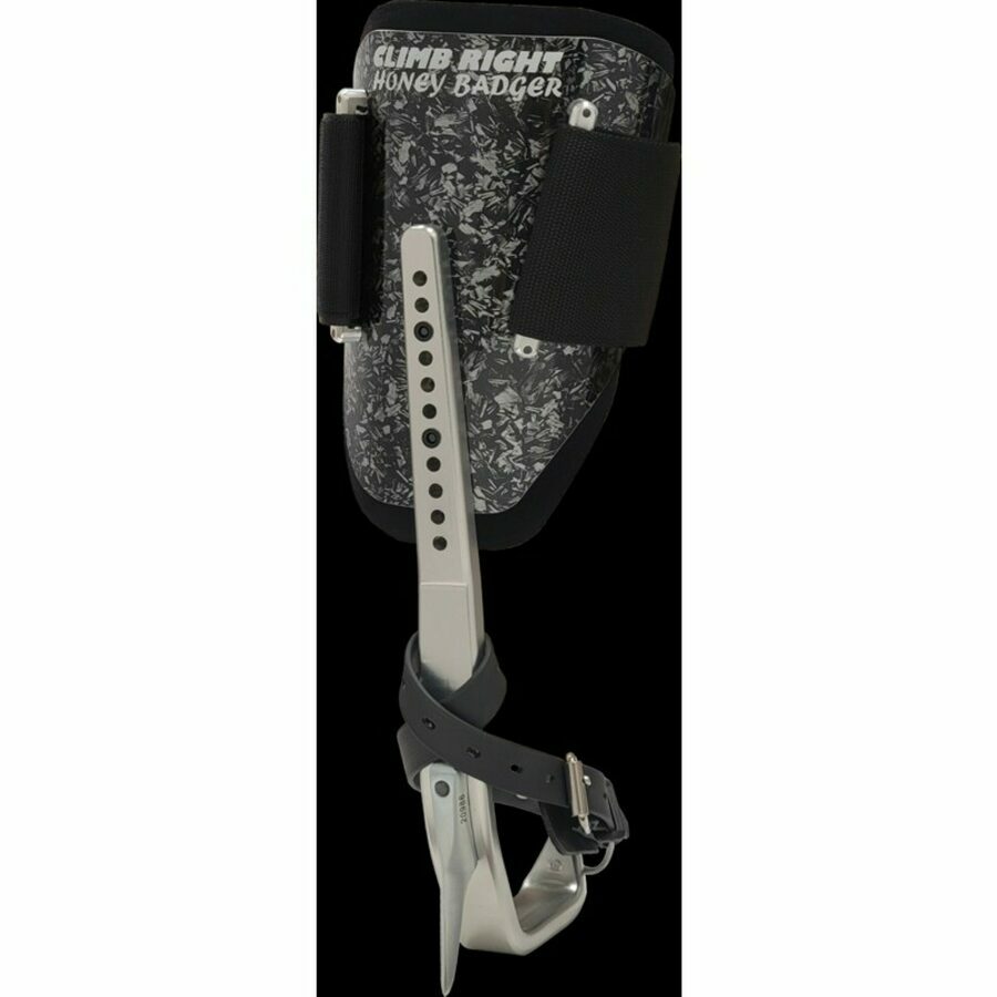 Description: Introducing Climb Right's latest aluminum climber, the Honey Badger. Designed, machined and assembled in the USA. Honey Badger Climbers feature lightweight contoured cuffs and climber shanks made of USA made aluminum. The climber set weighs 5.2 pounds per set, including the integrated tool kit.