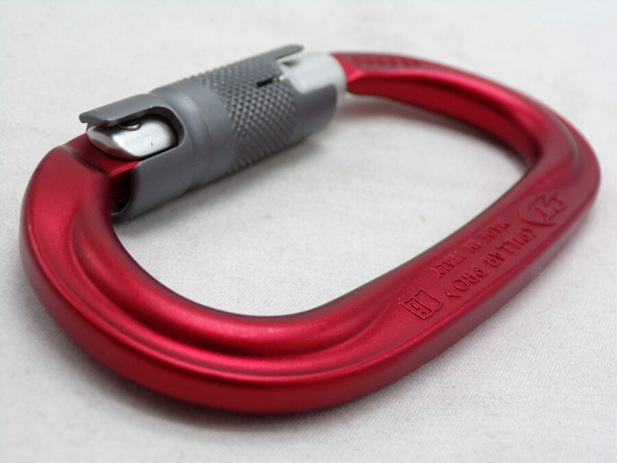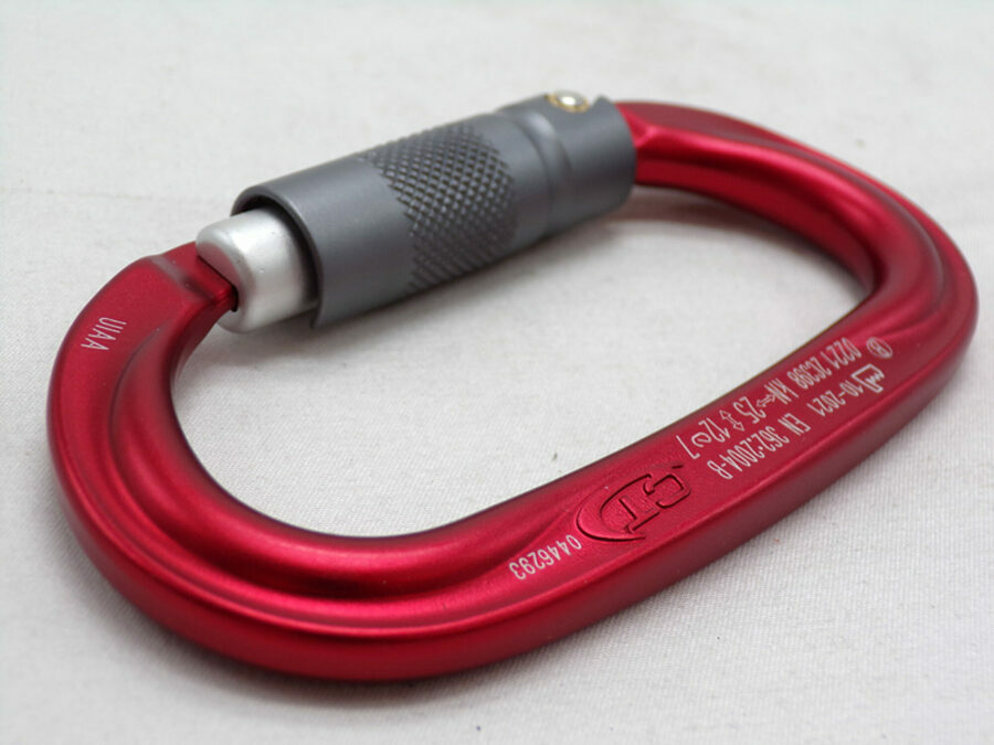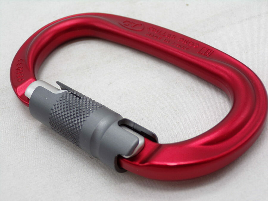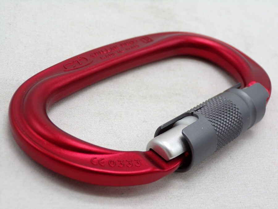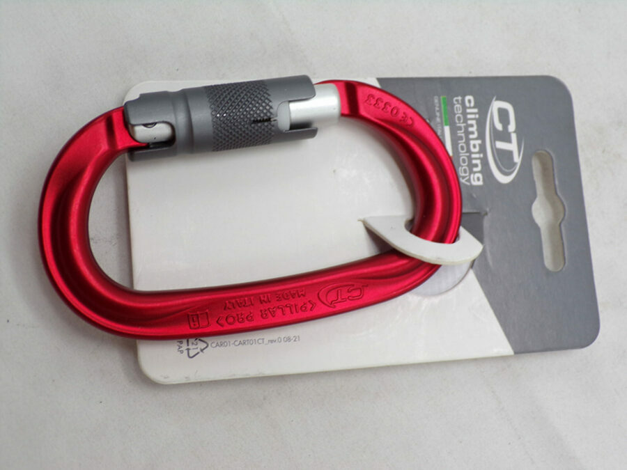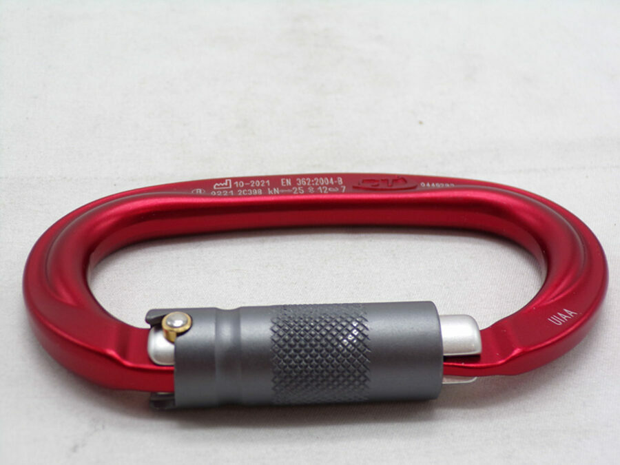 Description: Hot-forged light alloy carabiners with triplex twist-lock gate and oval shape, designed for mountaineering, aid climb, big wall, speleology, and rescue operations.