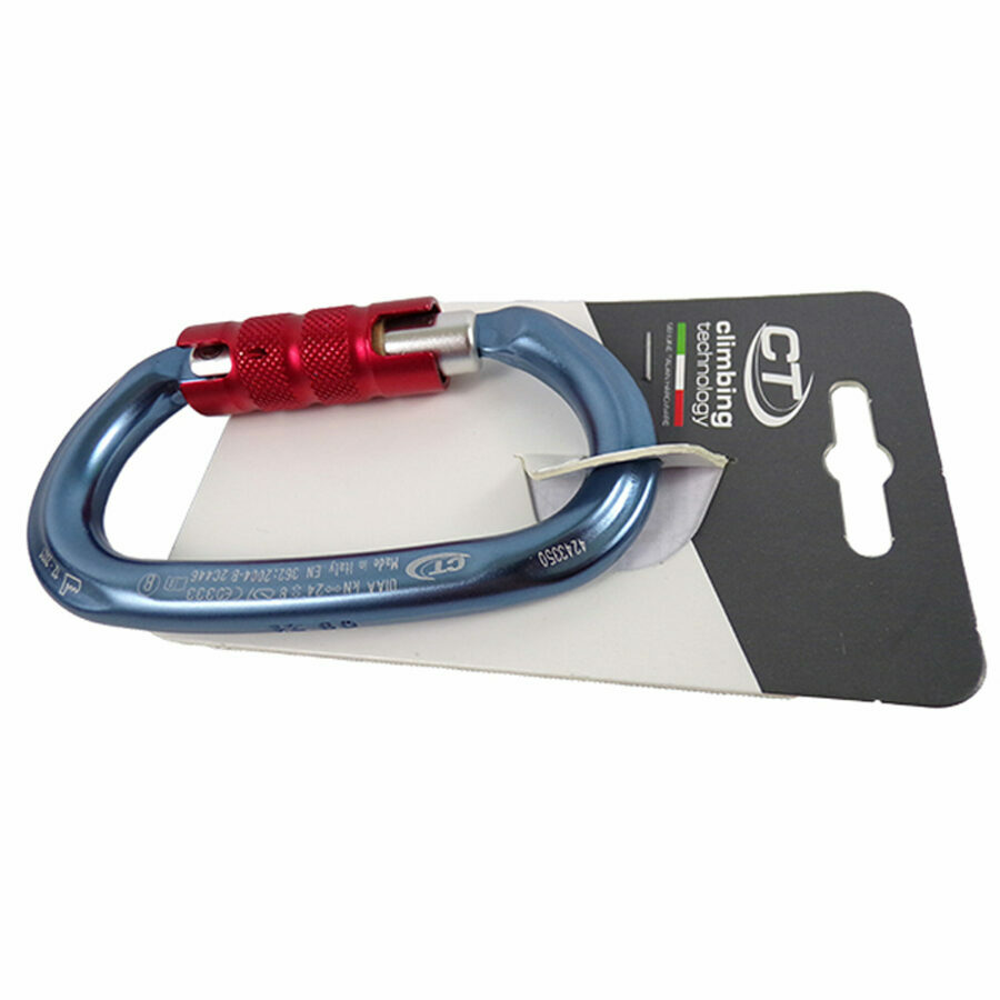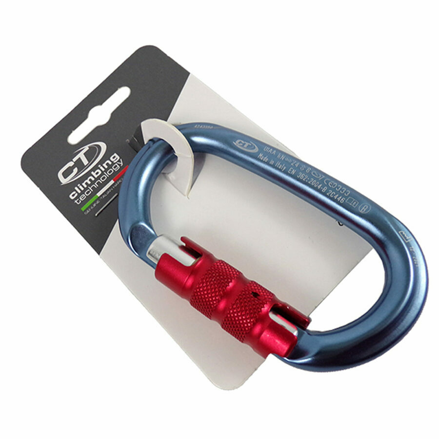 Description: Light alloy oval-shaped carabiner with triplex twist-lock gate