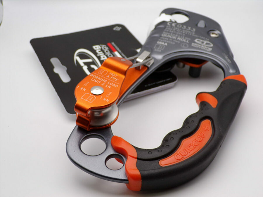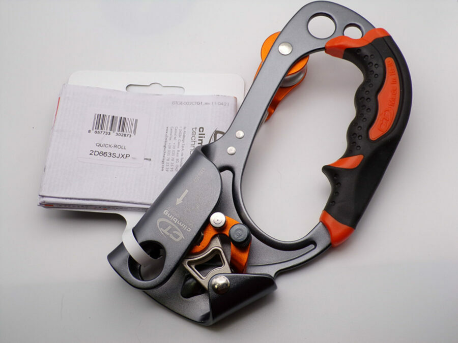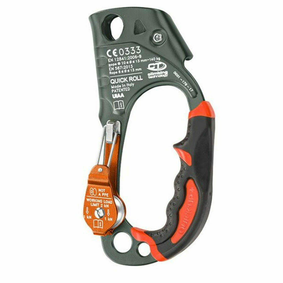 Description: Innovative ascender handle with integrated pulley. Much more effective and less clumsy than the traditional ascending handles with their additional connector: the working rope runs from the descender over the integrated pulley , thus reducing friction and facilitating the ascent.