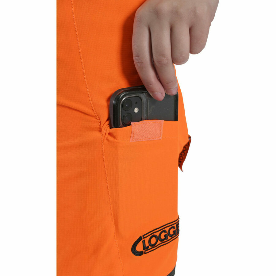 Details: Clogger's exclusive Arrestex HP chainsaw fabric, 6 layers of light and breathable advanced technical chainsaw protection