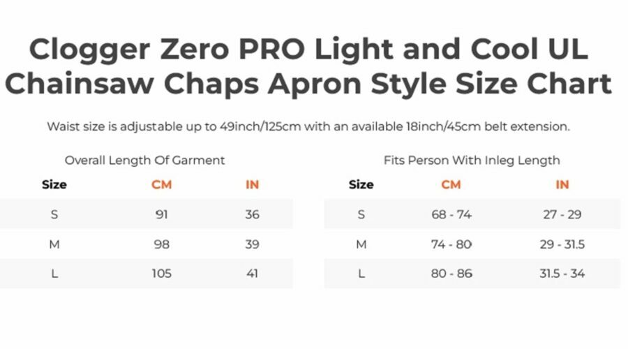 Description: A breath of fresh air in cool chainsaw chap design. Developed to protect not only against chainsaws but to reduce the heat buildup from physical exertion especially in hot environments. Zero chainsaw chaps are lightweight and breathable, adding protection rather than weight and helping you stay cool as the work becomes hot and heavy. Zero professional chainsaw chaps are 30% lighter than alternatives but offer up to 15% more protective area with true waist to ankle coverage. You also get the 5-strap attachment system needed to ensure that the chaps are effective if stuck.