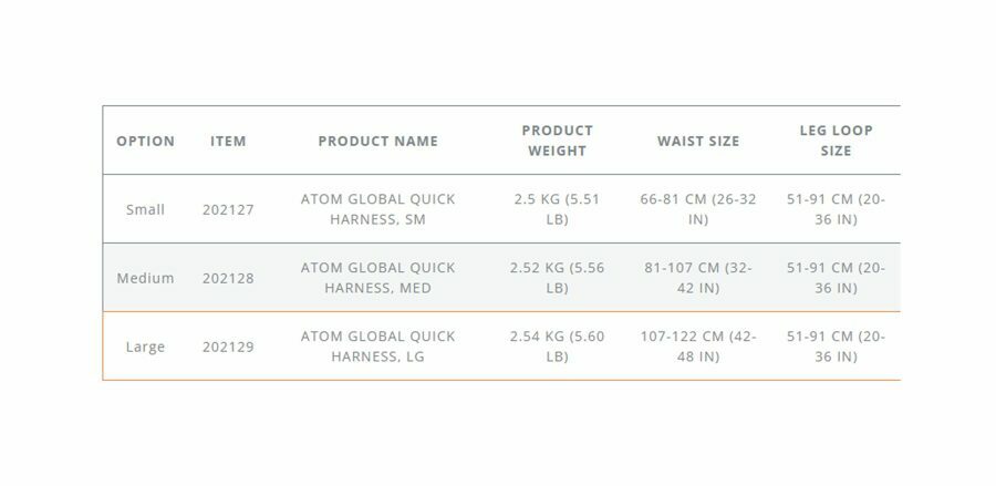 Details: ATOM Harness Line: Improved architecture molds to the user for a lightweight, low-profile fit. Ergonomic design for maximum comfort and support: Padding constructed from dual density foam, laminated to optimize load distribution and apply the right amount of support only where needed. Waist and leg pads are constructed with rolled edges to provide additional comfort. Y-back construction and bridged front lift: Allows for optimal adjustment at each shoulder. Provides a secure fit while minimizing pressure from the harness at the neck. Constructed with polyester webbing: Keeps a supple hand for comfort and easy buckle adjustment. Water repellent and UV resistant material for lasting strength and durability in extreme weather conditions. Multiple accessory attachment points provide ample space for stowing and organizing hardware and tools. Gear loop over-braid is based on a 32-carrier polyester, rope sheath design that delivers a familiar texture and functional robustness. Made in the USA of domestic and foreign components.