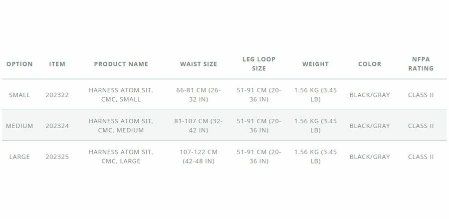 Description: The ATOM™ Series, our most comfortable harness line ever developed, is the culmination of stripping harness design down to the basics and re-imagining a performance-enhancing tool for rescue and rope access. CMC has incorporated years of feedback from experts who spend long hours in a harness. In addition, the ATOM harness went through rigorous field-testing, resulting in a harness design that improves safety, comfort and workflow efficiency in all the ways you can’t see, but feel. Every detail in the ATOM Sit Harness has been thoughtfully designed for the rescue or rope access professional. From the structure and attachment points to buckles, gear and accessory loops and other features, the ATOM delivers maximum comfort, safety and workflow efficiency in a lightweight and low profile harness system. Improved architecture molds to the user for a lightweight, low-profile fit. Ergonomic design for maximum comfort and support: Padding constructed from dual density foam, laminated to optimize load distribution and apply the right amount of support only where needed. Waist and leg pads are constructed with rolled edges to provide additional comfort. Constructed with polyester webbing: Keeps a supple hand for comfort and easy buckle adjustment. Water repellent and UV resistant material for lasting strength and durability in extreme weather conditions. Gear loop over-braid is based on a 32-carrier polyester, rope sheath design that delivers a familiar texture and functional robustness. Multiple accessory attachment points provide ample space for stowing and organizing hardware and tools. UL Certified to NFPA Class II Life Safety Harness. Made in the USA of domestic and foreign components.