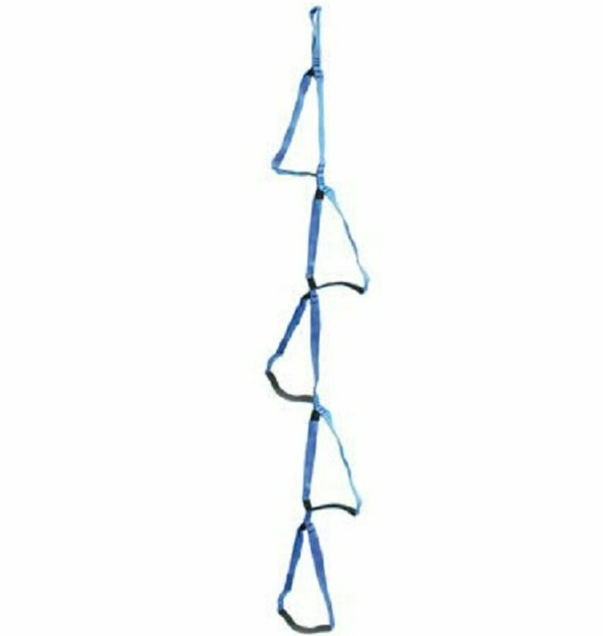 Description: A continuous length of tubular nylon webbing is bar tacked and reinforced to yield a classic stirrup. Sold singly in assorted colors for easy identification, available with 3, 4 or 5 steps.