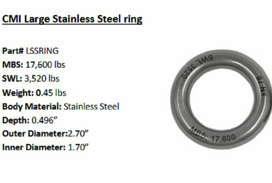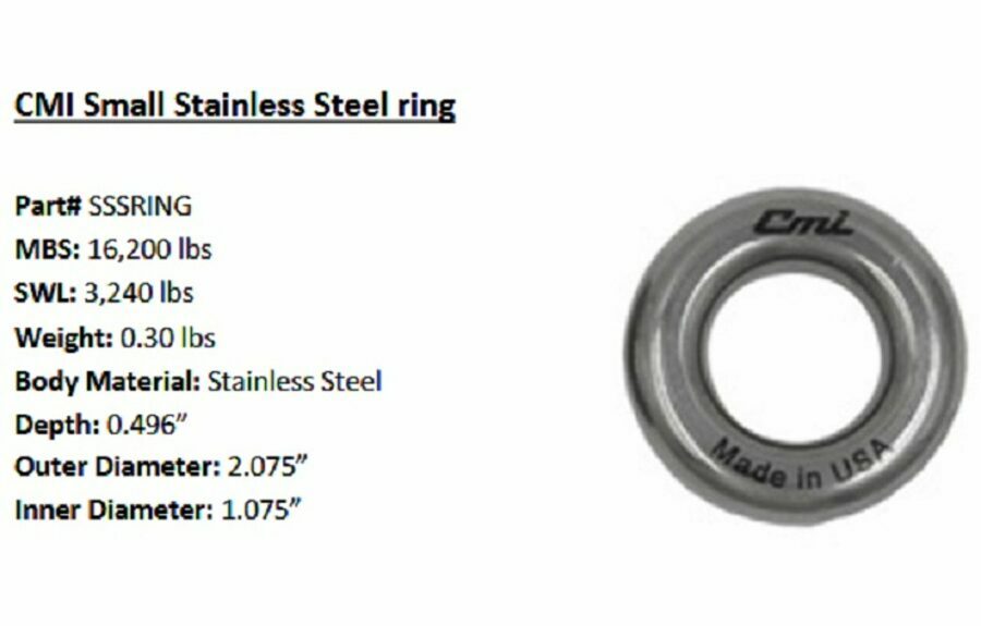 Description: The CMI stainless steel ring is an excellent accessory that can be used with your anchor or haul system. This device is also great for friction savers and saddles.