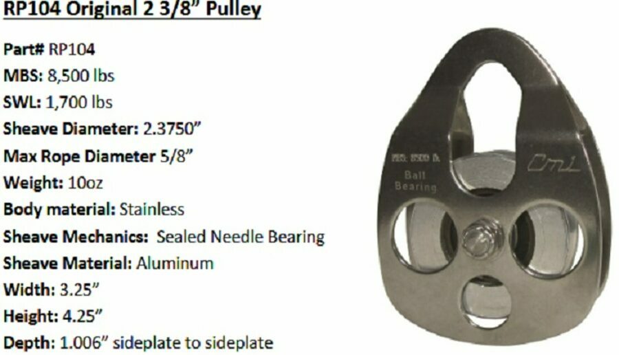 Description: These are the original CMI rescue pulleys that set the standard for lightweight, compact, yet functional rescue pulleys 50 years ago. Now featuring stainless steel axles on all models, they are built around either glass-filled Celcon or aluminum sheaves and employ either a sintered bronze bushing or sealed needle bearing. All models accept up to 5/8" diameter ropes and feature our now famous "wide skirt" sideplate design for maximum rope protection. These are the most versatile rescue pulleys available and their lightweight, compact design makes them a pleasure to carry. High strength in a compact design. Stainless steel sideplates, 2 3/8" aluminum sheave, needle bearing, and stainless steel axle.